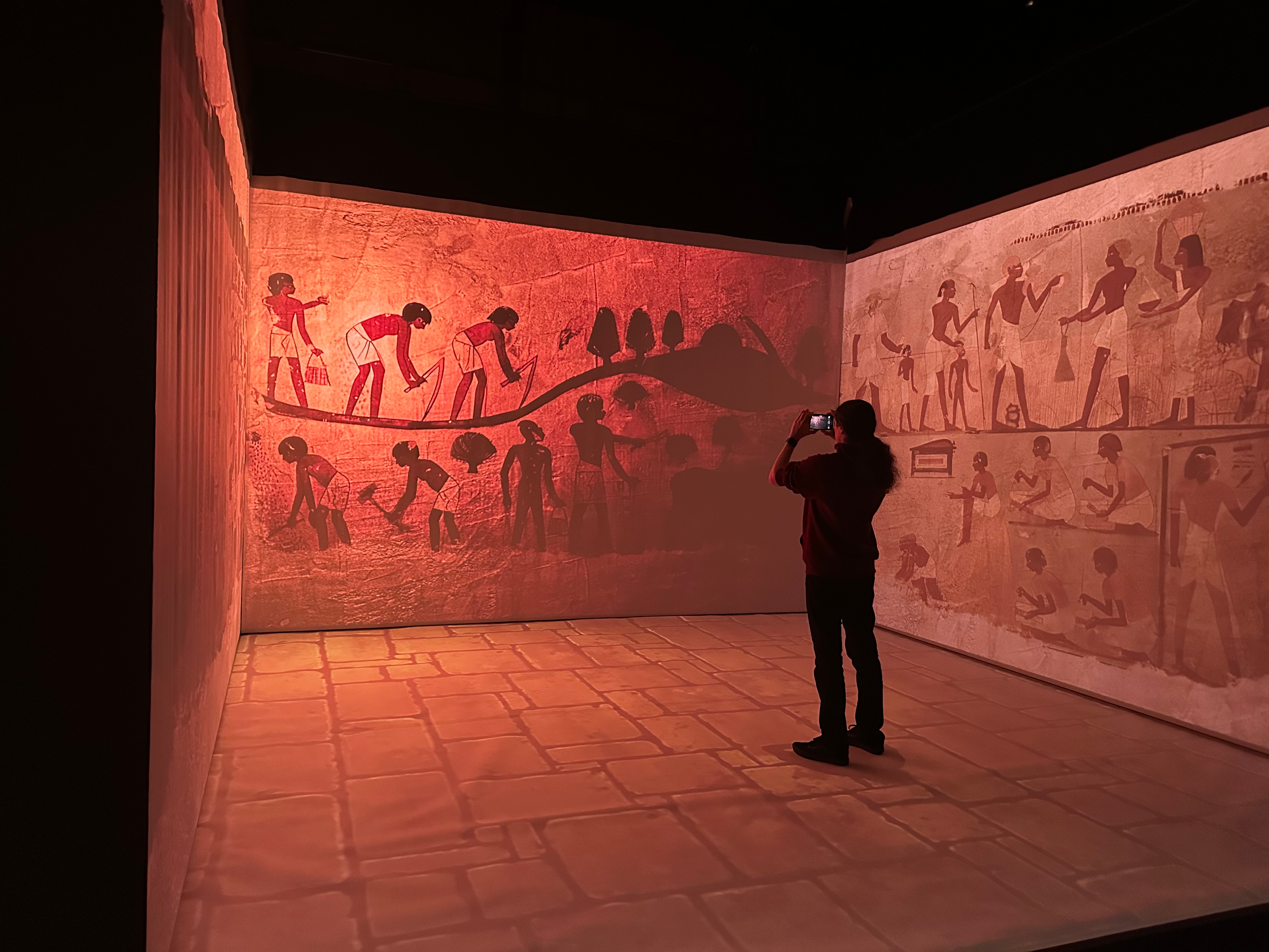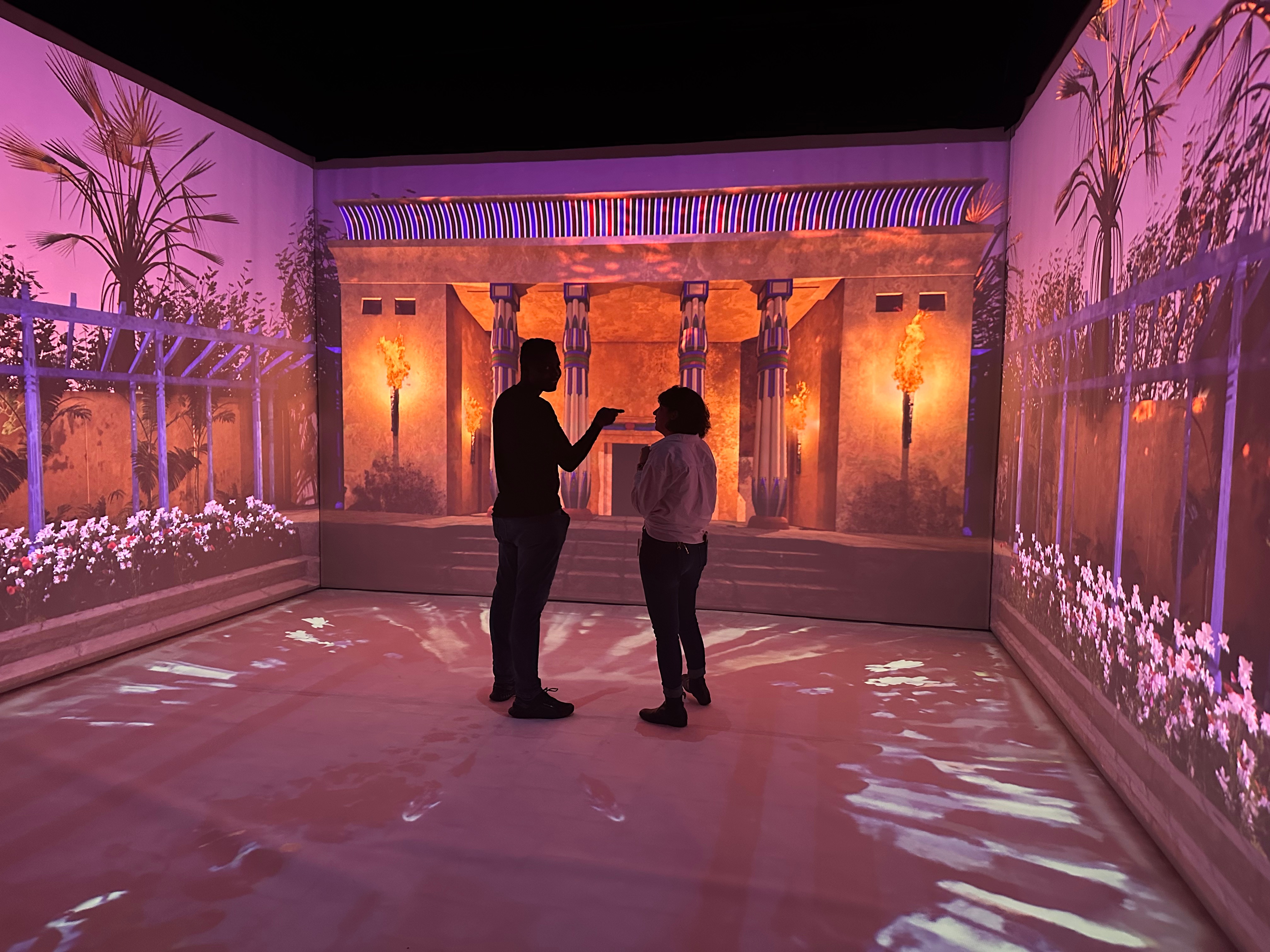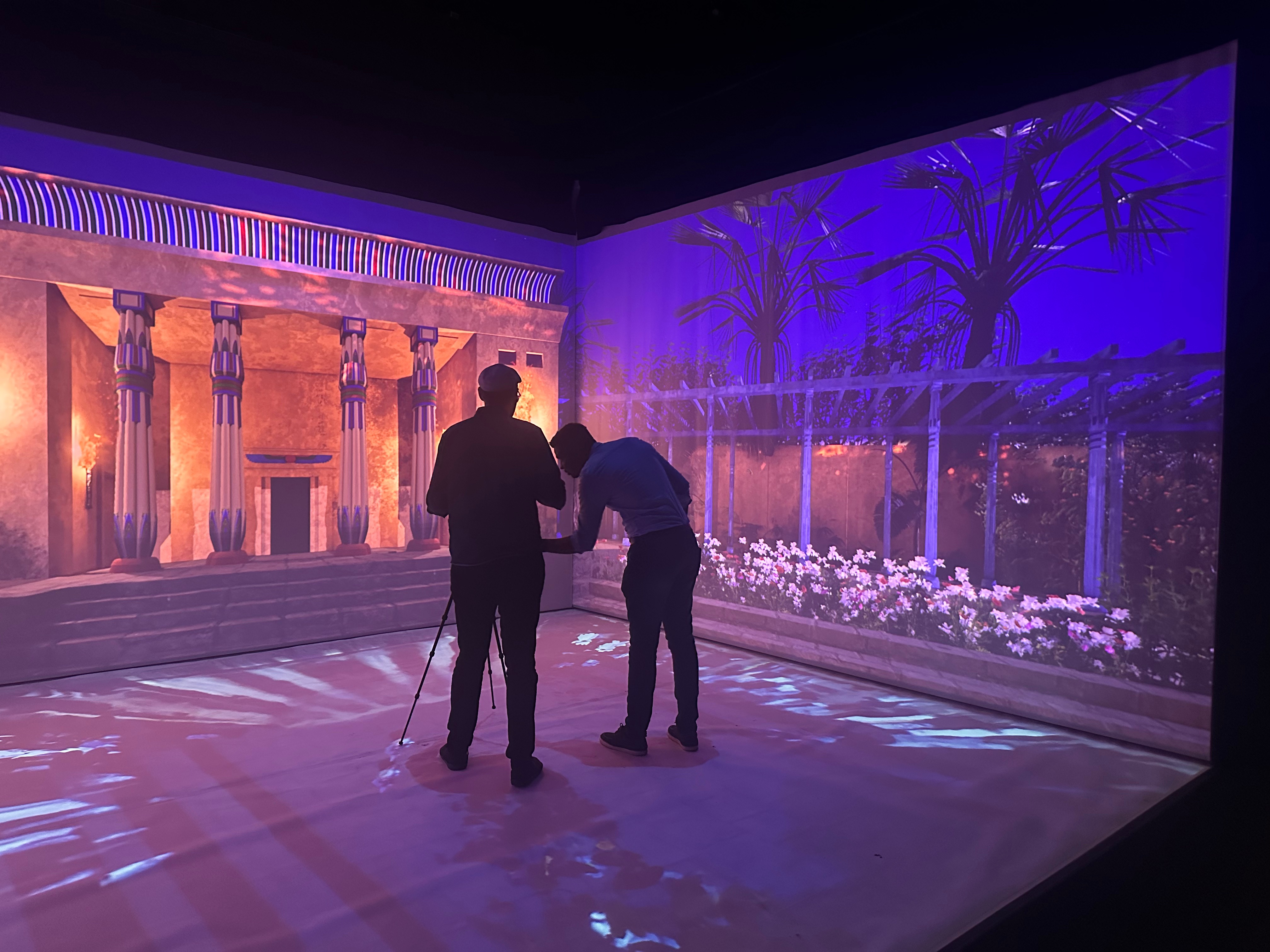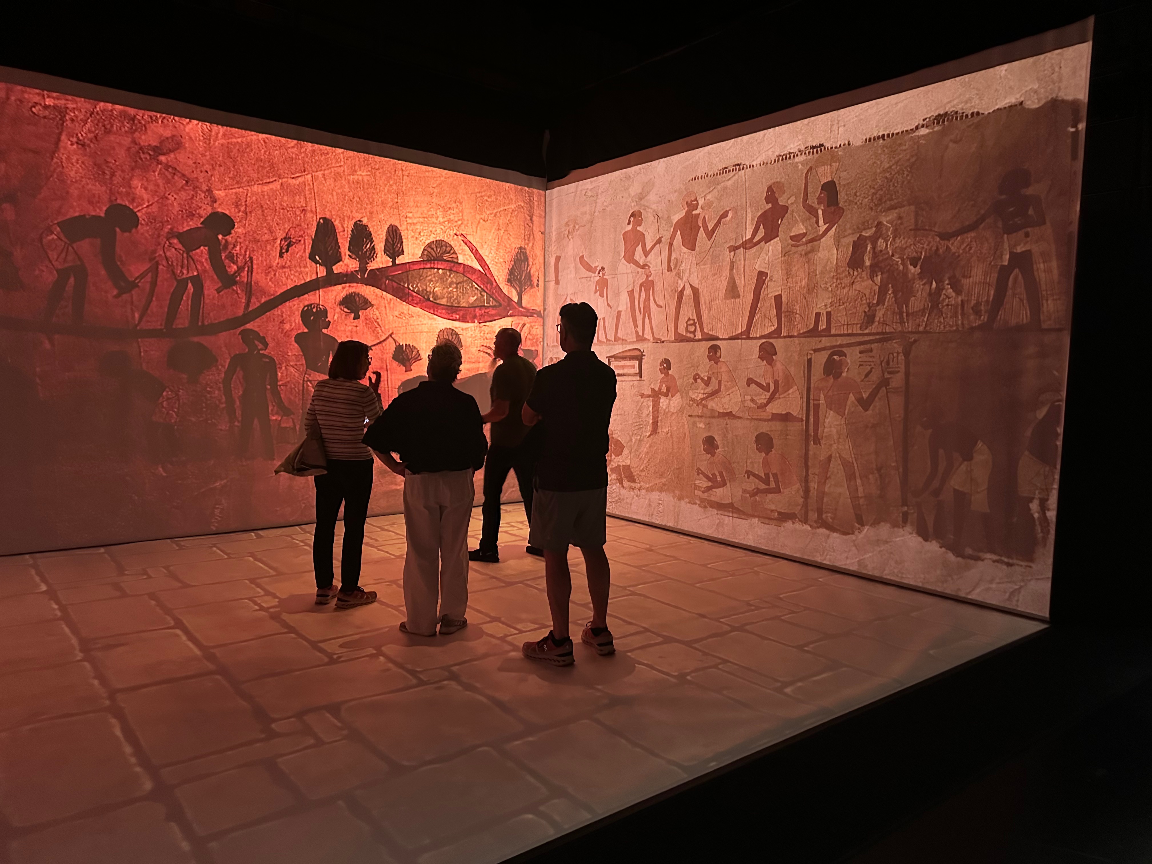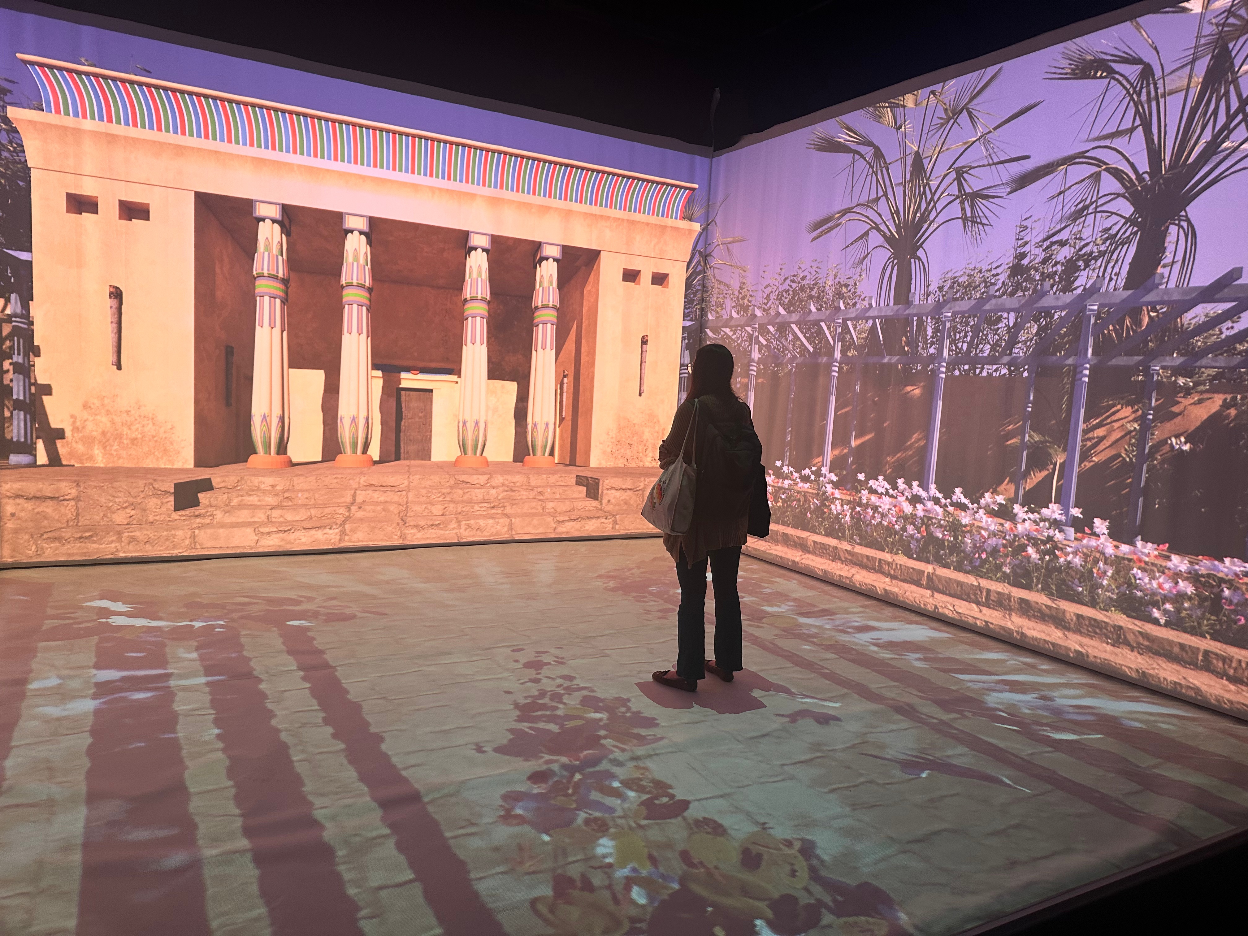 The exhibition unfolds in three connected acts. Act I immerses visitors in a digitally reconstructed ancient Egyptian garden. Ecologically Accurate Soundscape: A key focus of the research was identifying birds, insects, and other native sound-producing organisms to develop a layered, immersive auditory environment. Narrations and soundtracks were carefully composed to complement each act, guiding visitors with context and emotional depth.