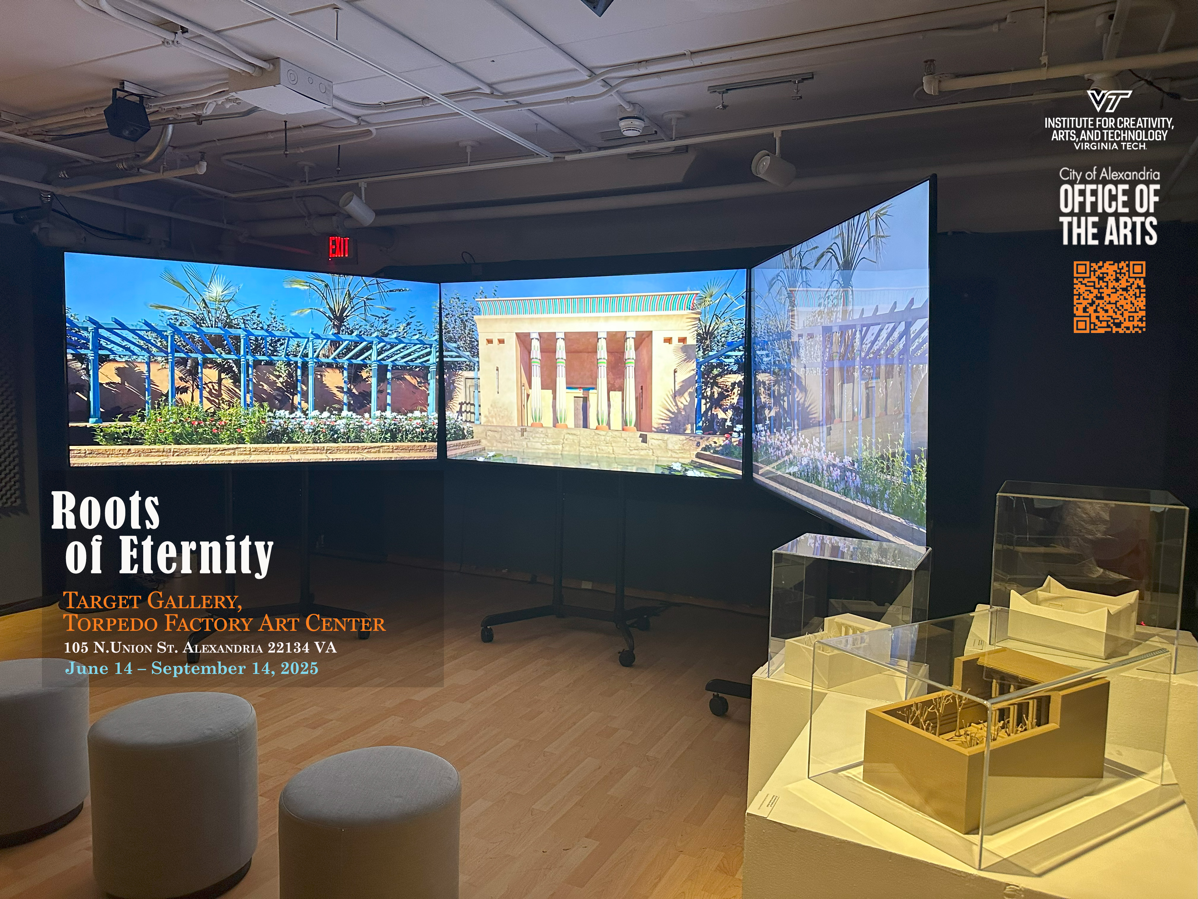 Following its debut at the Cube, Moss Arts Center, Roots of Eternity traveled to the Target Gallery at the Torpedo Factory Art Center in Alexandria, Virginia. This gallery captures moments from the immersive exhibition’s second installation, on view from June 14 to September 14, 2025, where digital storytelling and ancient heritage came together in a new public setting.